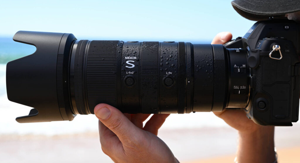 Cette réduction de gabarit ne donne pourtant jamais le sentiment d’un compromis. Le fût conserve une construction dense et rassurante, typique de la série S, avec une tropicalisation sérieuse et une finition matte élégante. Nikon a visiblement cherché à alléger sans fragiliser : le sentiment général est celui d’un outil pensé pour encaisser les réalités du terrain, qu’il s’agisse d’un reportage sous la pluie, d’une compétition sportive ou d’une session animalière.