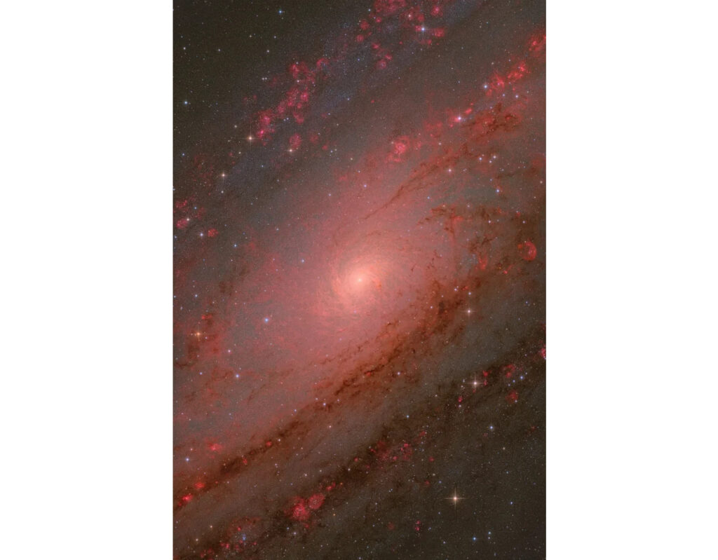 Commentaire des jurys : l’une des forces majeures de cette image réside justement dans ce qu’elle choisit de ne pas montrer. La galaxie d’Andromède a déjà été capturée des milliers de fois, sous tous les angles et avec d’innombrables télescopes, au point qu’il semble difficile d’en révéler encore quelque chose de neuf. Pourtant, cette photographie y parvient avec brio : grâce à une composition audacieuse et inhabituelle, elle dévoile des détails inédits sans jamais occulter la grandeur d’ensemble de la scène.