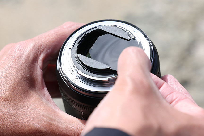 Si cette forme protège efficacement la lentille contre les reflets et les chocs latéraux, elle empêche l’utilisation de filtres vissés traditionnels à l’avant. Pour pallier cette limitation tout en laissant libre cours à la créativité, Canon propose un porte-filtres arrière compatible avec des gels et filtres d’effets pour ceux qui souhaitent gérer les effets créatifs ou les corrections lors de prises de vue.