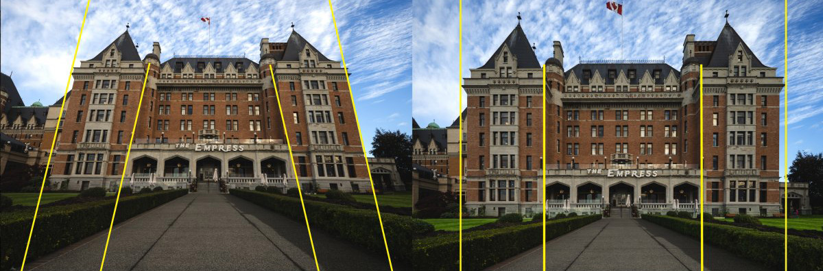 Lorsqu’un photographe pointe un appareil vers le haut pour capturer un bâtiment, les lignes verticales convergent naturellement vers le sommet de l’image. Ce phénomène peut donner l’impression que les bâtiments tombent en arrière et se déforment. Les objectifs à décentrement permettent précisément d’éviter cet effet en décalant l’axe optique sans incliner l’appareil.