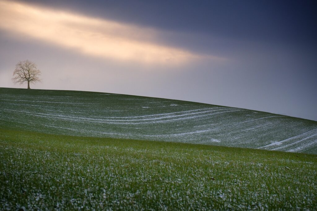 Cette lumière rasante joue un rôle fondamental en photographie de paysage. Elle révèle des micro-reliefs habituellement invisibles, souligne les aspérités du terrain et donne de l’épaisseur aux scènes les plus simples. Un champ enneigé, apparemment uniforme, peut se transformer en surface rythmée par le jeu des ombres portées. Une légère variation de hauteur, une trace de passage ou une accumulation de neige deviennent immédiatement perceptibles et structurent la lecture de l’image. Photographier dans ces conditions impose une observation plus attentive de la lumière avant même de penser au cadrage. Il devient essentiel d’identifier l’orientation des ombres, leur longueur et leur interaction avec les lignes naturelles du paysage. La lumière cesse alors d’être un simple éclairage pour devenir un outil de hiérarchisation visuelle, capable de guider le regard du premier plan vers l’arrière-plan et de créer une véritable profondeur spatiale.